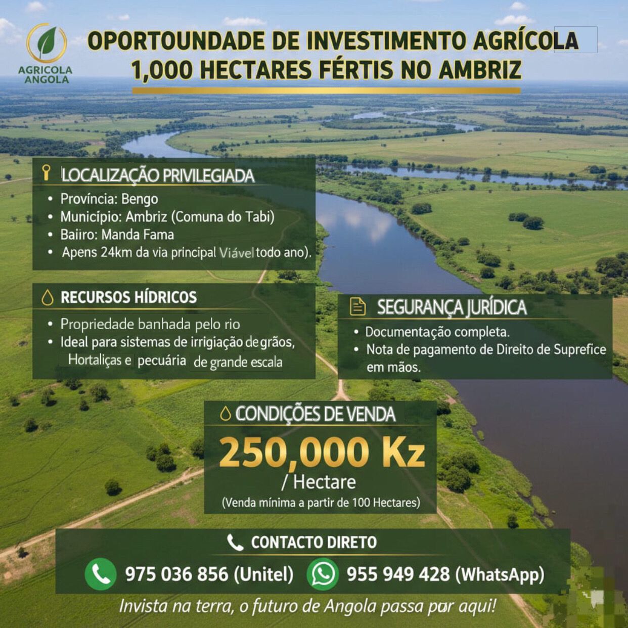 🔹 Preço: 150.000 Kz por hectare