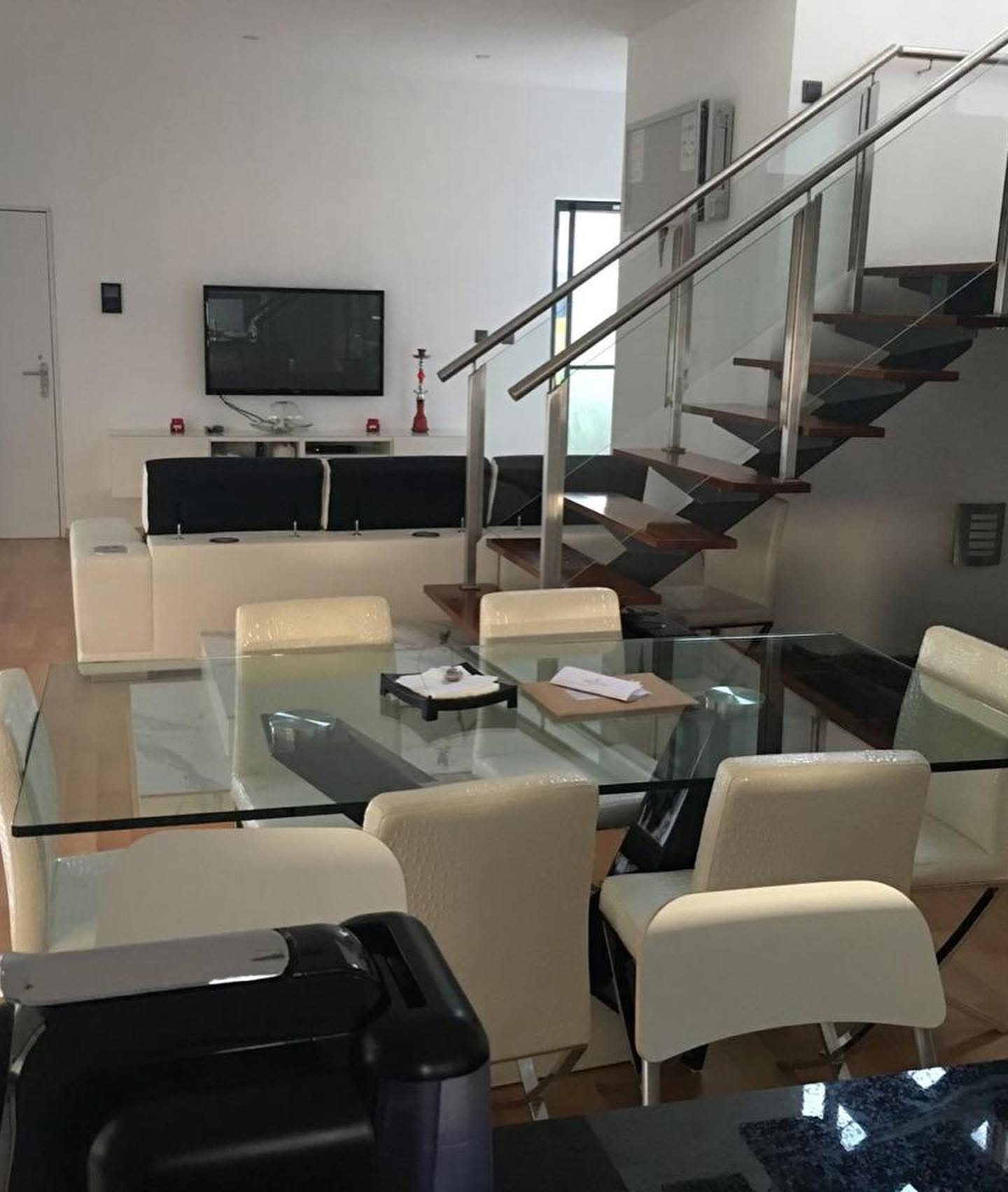 Casa com aproximadamente 480 metros quadrados de construção. No rês do chão exterior com estacionamento para duas viaturas e jardim a entrada. Área técnica para gerador, arrecadação em armário com portas metálicas, garagem para dois carros no interior, com portão automático, marquise, quintal com cozinha e churrasqueira exterior, piscina, um quarto é um quarto de banho para apoio exterior.
